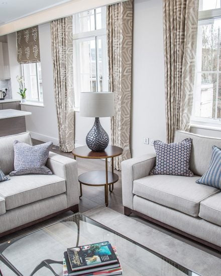 A sleek but relaxing environment was achieved, along with a few stand-out pieces, for a client’s London base.
